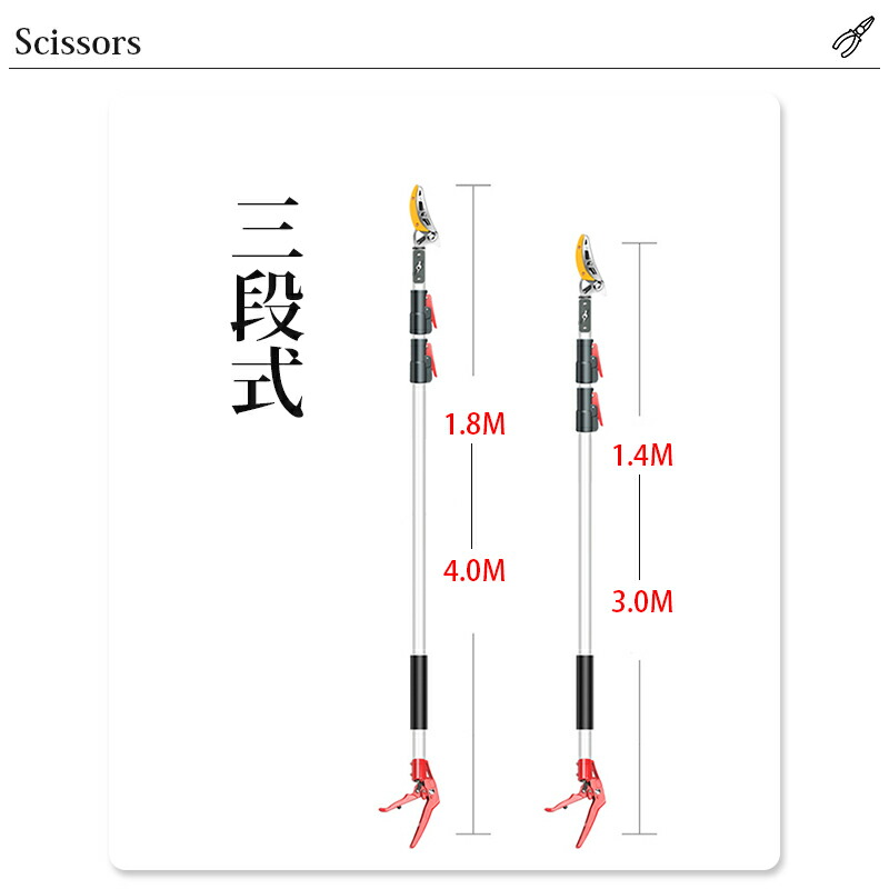 高枝切りバサミ 3m 4m 5m 伸縮 キッチン用品 食器 調理器具 新登場! 1.3~2m(2段式) 1.8~3m(2段式) 1.4~3m(3段式) 1.8~4m(3段式)