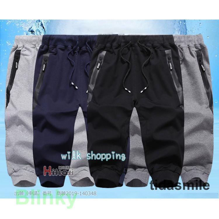 ジャージパンツ メンズ 7分丈 ストレ スポーツ アウトドア 超目玉商品 黒 ブルー ライトグレー ダークグレー M L XL 2XL 3XL 4XL 5XL