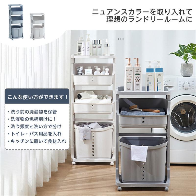 ランドリーバスケット スリム キャスタ ホワイト3段 ホワイト4段 グレー3段 グレー4段