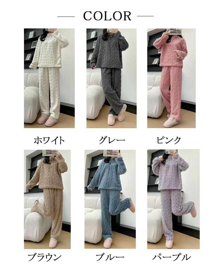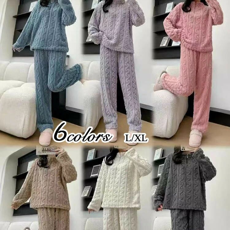パジャマ レディース ルームウェア 冬 レディース ナイトウェア ルームウェア ルームウェア 上下セット 通販 ホワイト グレー ピンク ブラウン ブルー パープル L XL