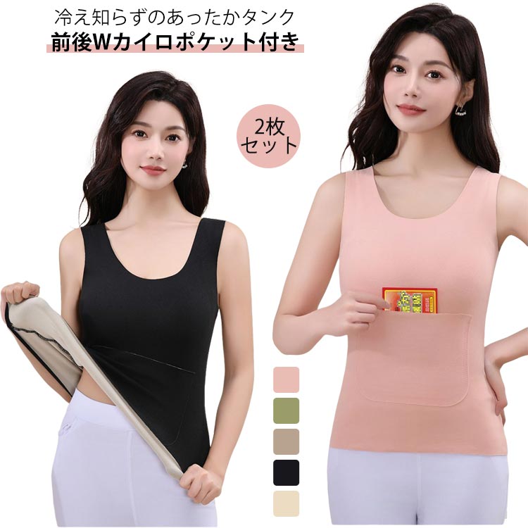 タンクトップ 無地 前後カイロポケット インナー 下着 ナイトウエア 豊富な品揃え ピンク2枚 グリーン2枚 ベージュ2枚 肌色2枚 ブラック2枚 M L XL 2XL 3XL