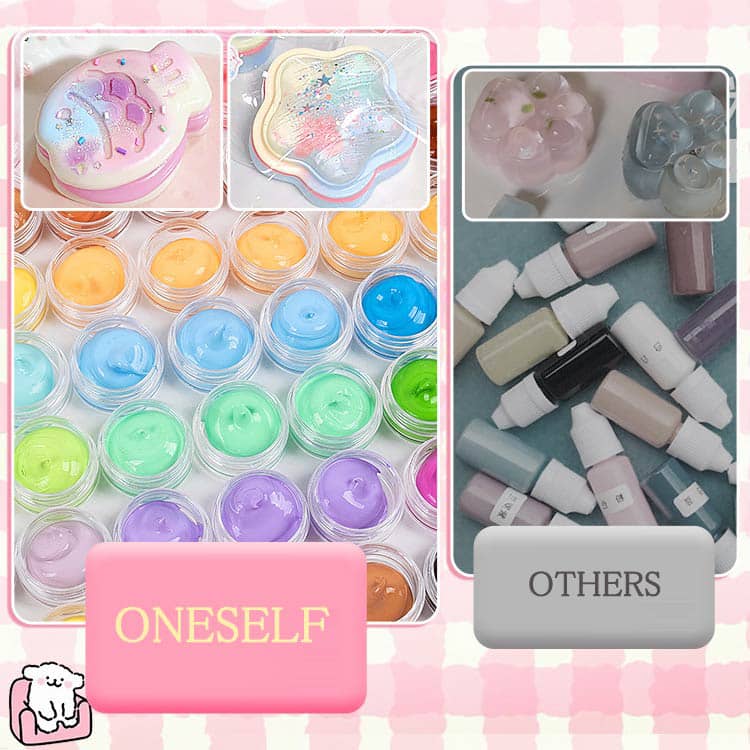 セット内容:収納ケース、シリコンモールド×6、スクイーズジェルAとB200ml、スクイーズ用着色剤×6(色ランダム発送)、パールリボン*20、飾りボール*2、EVA袋*10、ジッパー袋*2、カップ*2、30ml分膠カップ*10、ブラシ*1、かき混ぜ棒*10、ワセリン、スポイト*3、フロックパウダー、スパンコール