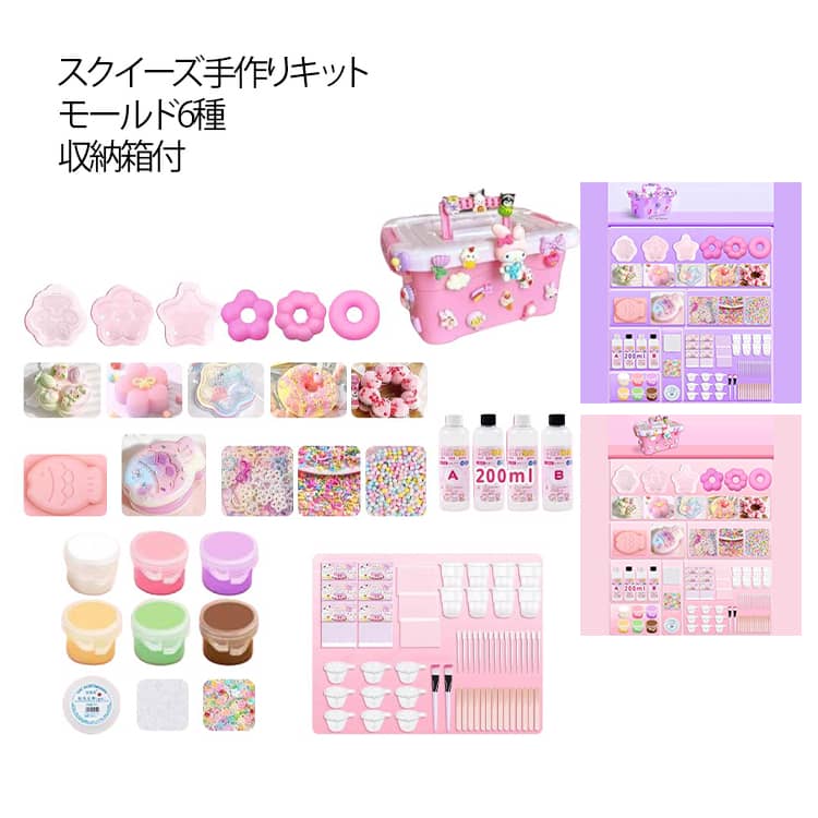 スクイーズ手作りキット 簡単 握る D おもちゃ ゲーム 新登場! ピンクセット(収納箱付) パープルセット(収納箱付)