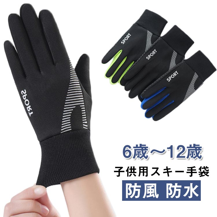 手袋 撥水 キッズ ジュニア グローブ キッズ アクセサリー 手袋 豊富な品揃え ブラック ブルー グリーン M(20-30kg) L(30-42.5kg)