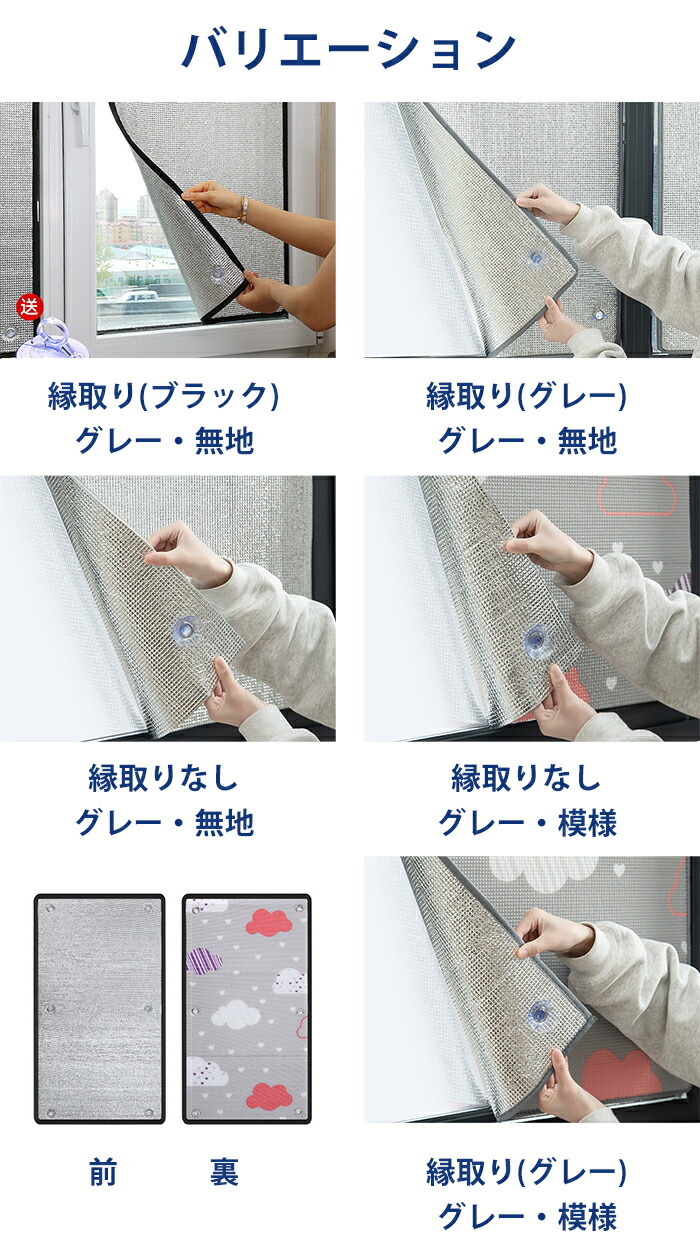遮熱シート 窓 日よけ サンシェード 縁取り(ブラック) 縁取り(グレー) 縁取りなし グレー・無地 グレー・模様