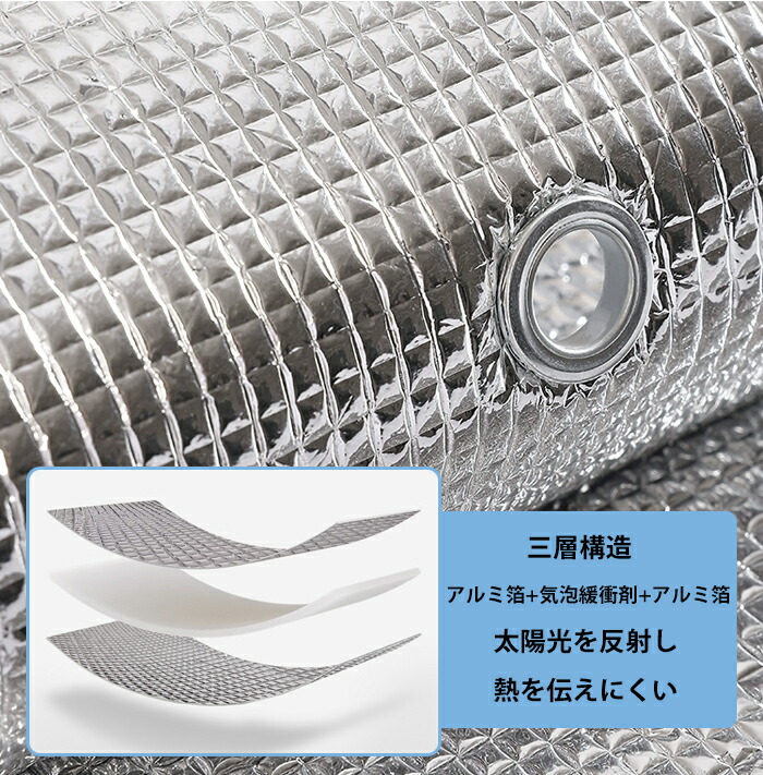 アルミフィルムを使用し、太陽光の熱を反射して室内の温度上昇を抑えます。