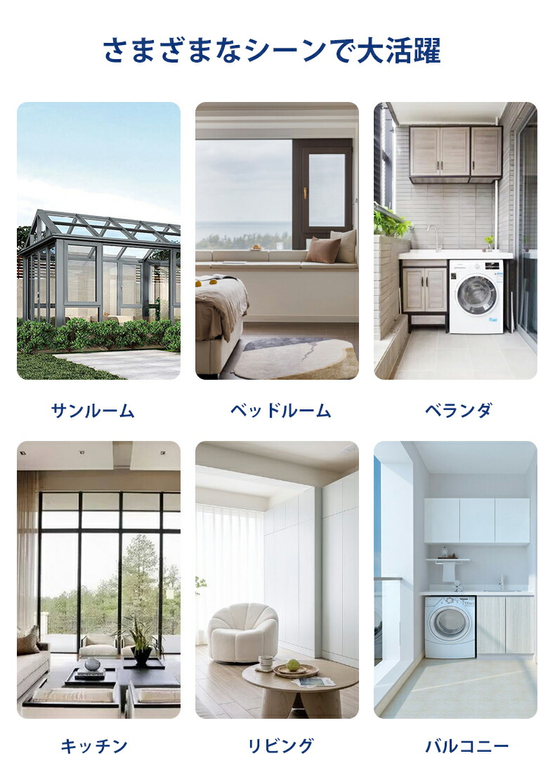 適用場所が広く、自宅の窓やサンルームはもちろん、オフィスや店舗でも利用可能。