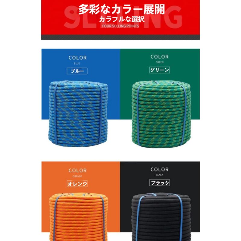 スピードドロップロープ、11mm耐摩耗 ブルー グリーン オレンジ ブラック 12mmx10M 12mmx20M 12mmx30M 12mmx50M