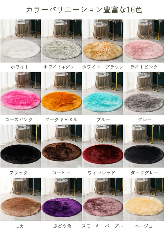 カーペット 洗える ラグマット ラグ ホワイト グレー ライトピンク ローズピンク ぶどう色 スモーキーパープル ホワイト+グレー ホワイト+ブラウン コーヒー ブラック ワインレッド モカ ブルー ベージュ ダークグレー 直径45cm 直径50cm 直径60cm 直径70cm 直径80cm 直径90cm 直径100cm