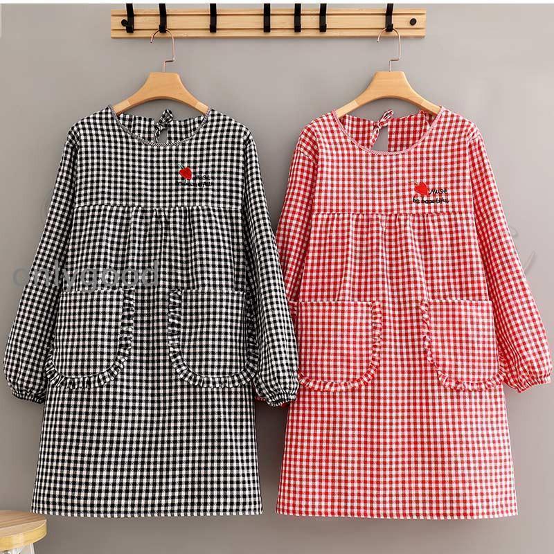 割烹着 おしゃれ エプロン 袖付き れ ワンピース 新登場! レッド ブラック パープル コーヒー色