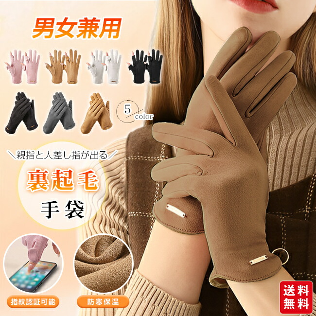 手袋 指穴グローブ 指出し 裏起毛 ス バッグ 小物 ブランド雑貨 人気 ブラック-レディース オフホワイト-レディース カーキ-レディース ピンク-レディース ブラック-メンズ カーキ-メンズ グレー-メンズ