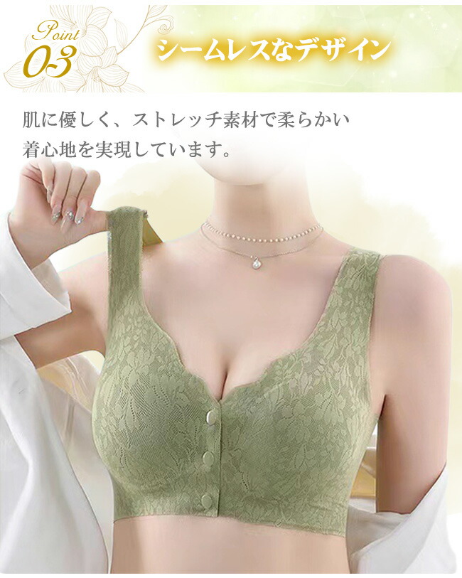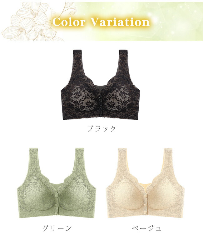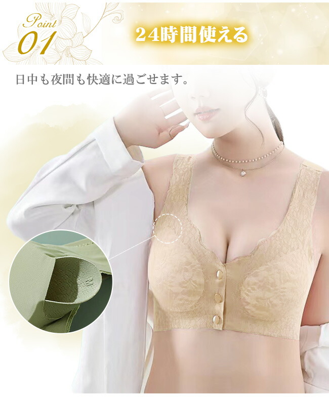 ナイトブラ シームレス ブラ フロント インナー 下着 ナイトウエア 特集 ブラック グリーン ベージュ M L XL
