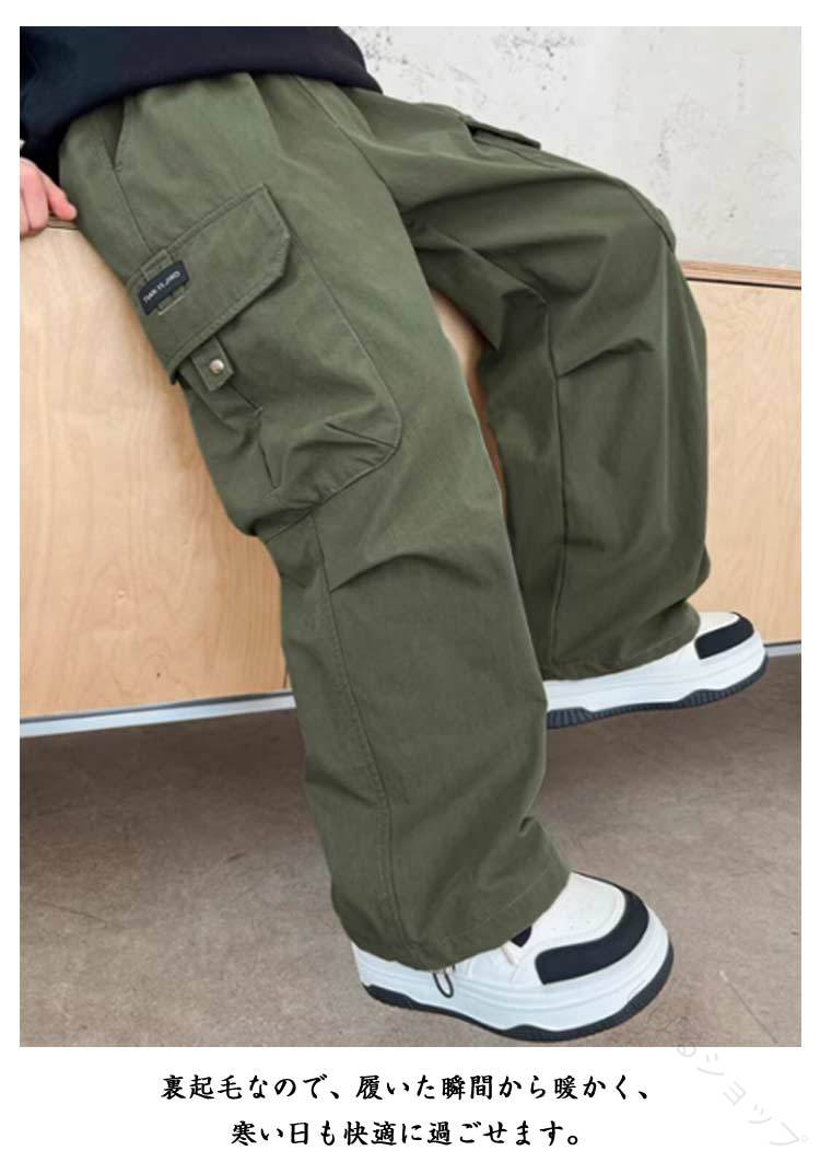 キッズ 裏フリース カーゴパンツ 男の キッズ ボトムス パンツ 続々入荷中 ブラック裏起毛 カーキ裏起毛 120 130 140 150 160 170