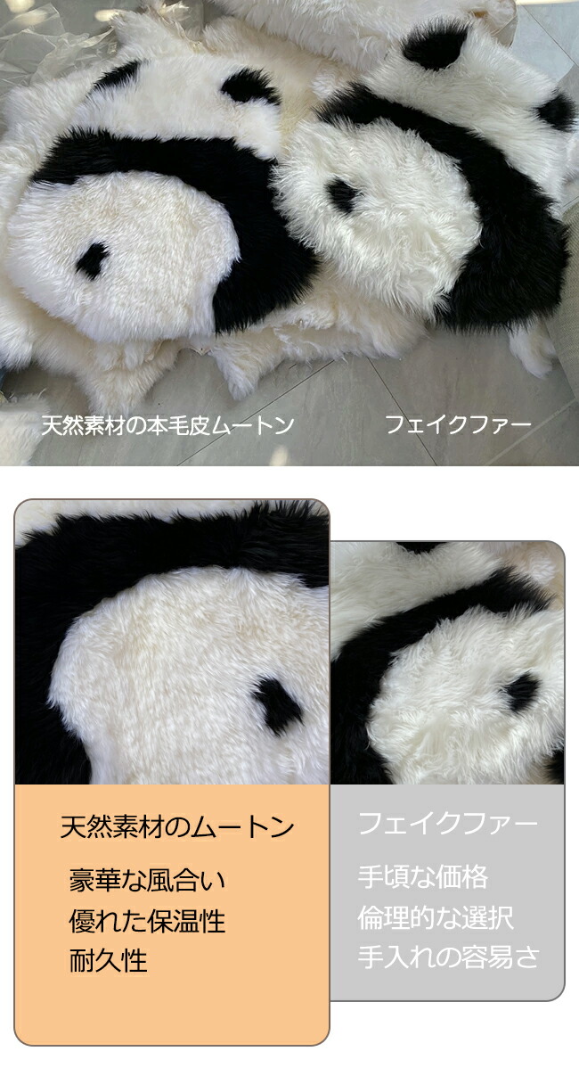 ムートンラグ パンダ ムートンフリース フェイクファー 天然ムートン