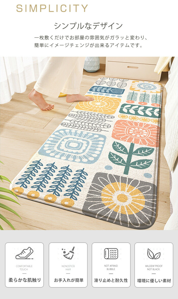 ラグ ラグマット おしゃれ ロングマット リビング 北欧風 花柄 洗える 長方形 正方形 ベッドサイド キッチンマット 玄関 絨毯 カーペット 滑り止め付 大判 かわいい 高級感 賃貸 柔らかい