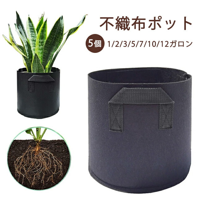 不織布プランター 不織布ポット 5個 1ガロン×5個 2ガロン×5個 3ガロン×5個 5ガロン×5個 7ガロン×5個 10ガロン×5個 12ガロン×5個
