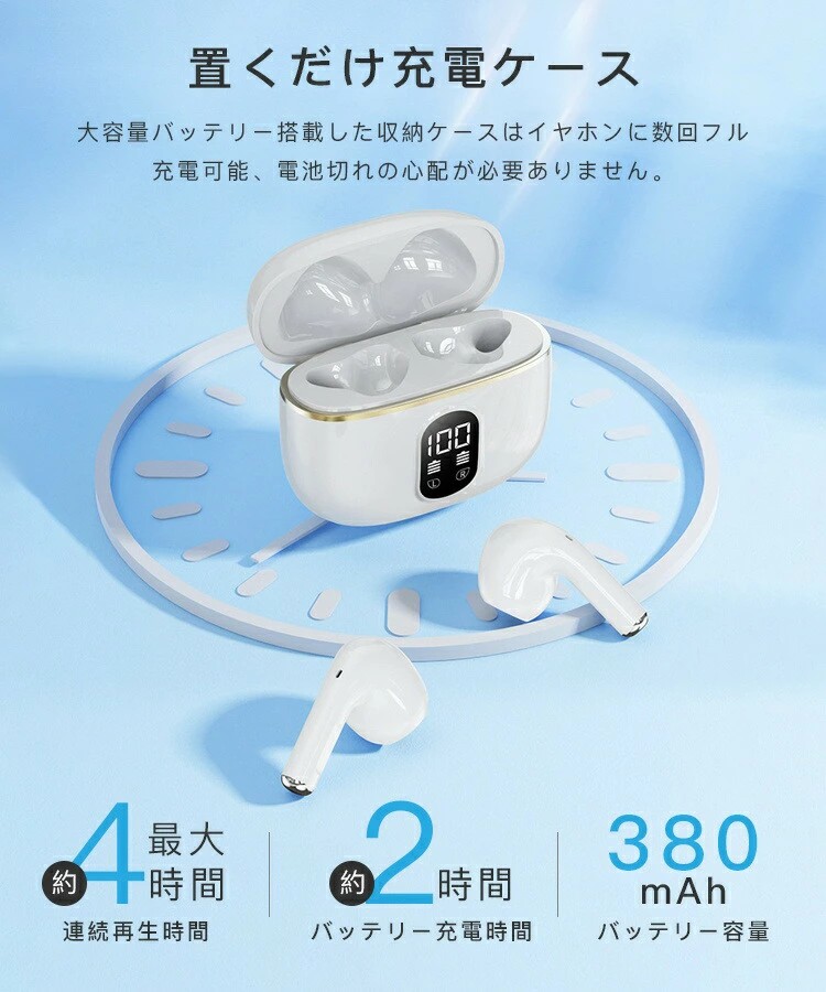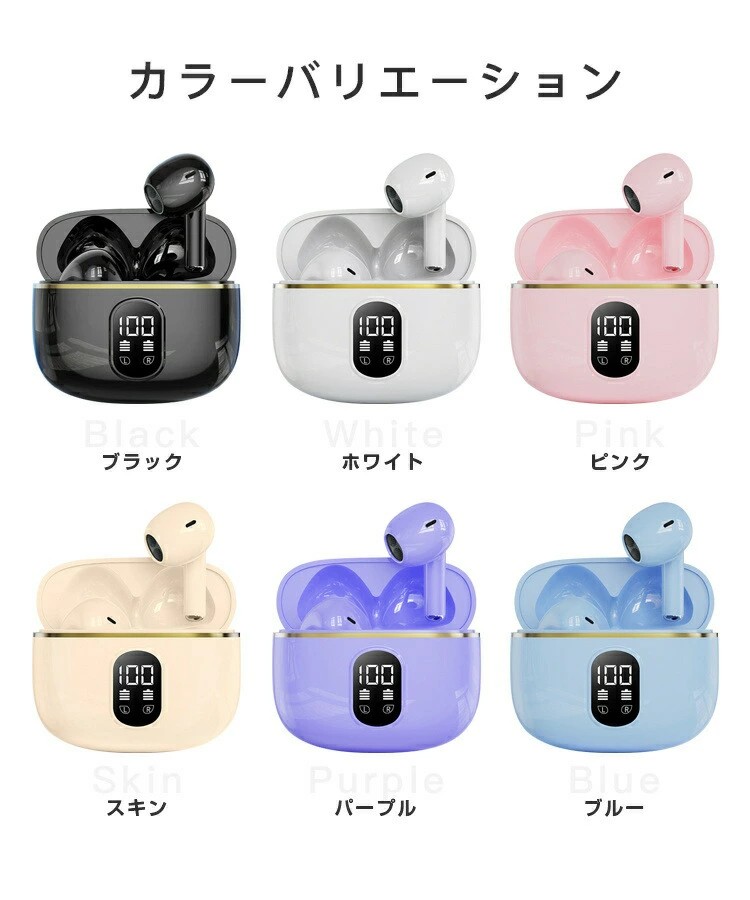 ワイヤレスイヤホン bluetooth ホワイト ブラック スキン ブルー パープル ピンク