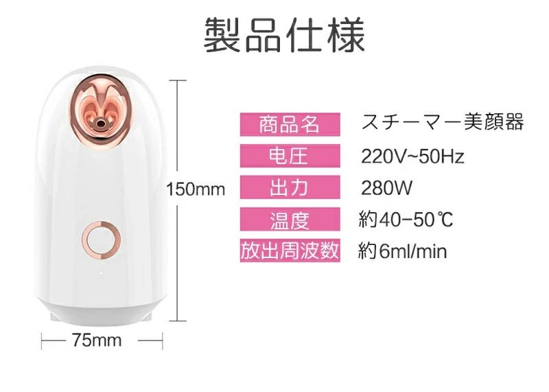 スチーマー美顔器 美顔器 美顔機 フェ ホワイト ピンク