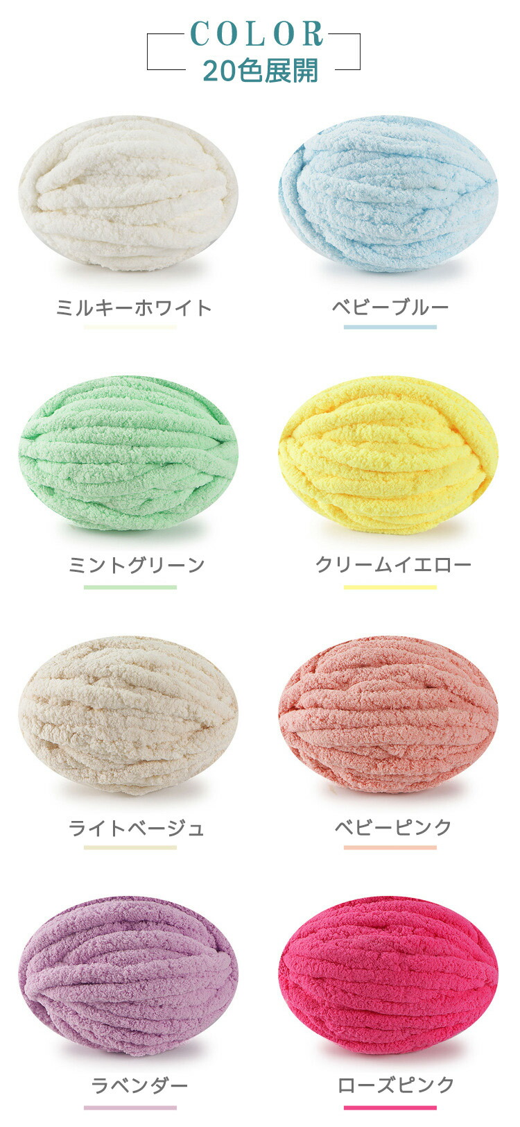 超極太もこもこヤーン 全20色 モール 日用品雑貨 文房具 手芸 豊富な品揃え 2球セット 3球セット 5球セット 10球セット ミックス(色と数を備考欄へ) #1ミルキーホワイト #2ベビーブルー #3ミントグリーン #4クリームイエロー #5ライトベージュ #6ベビーピンク #7ラベンダー #8ローズピンク #9ライトグレー #10ミルクティー #11マスタード #12レッド #13ダークグレー #14キャメル #15ロイヤルブルー #16ディープグリーン #17チョコレート #18ブラック #19ネイビー #20コットンキャンディー