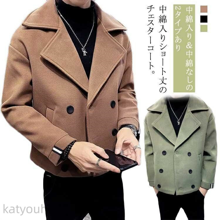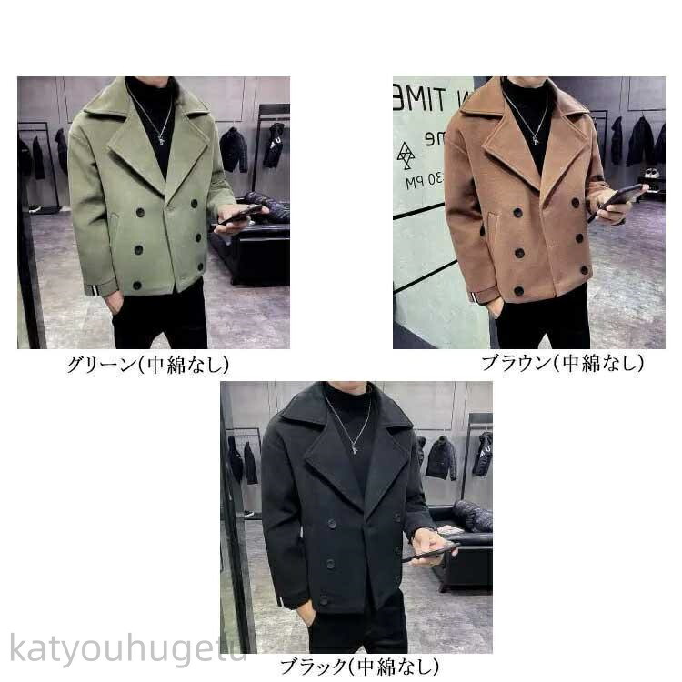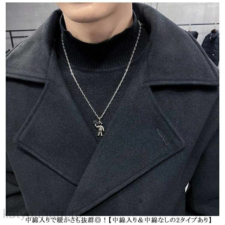 暖かい キルティング入り 中綿入り ダブル メルトン オーバーサイズ ゆったり 厚手 秋冬 メンズ コート 中綿ジャケット