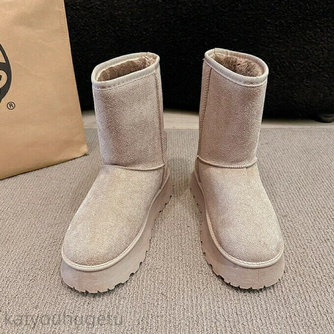 オシャレ ふかふか 暖かい 保温 冬 靴 新作 ブラック キャメル グレー ベージュ 230 235 240 245 250 255