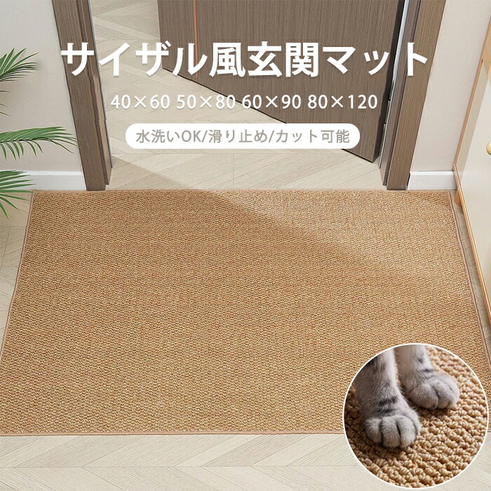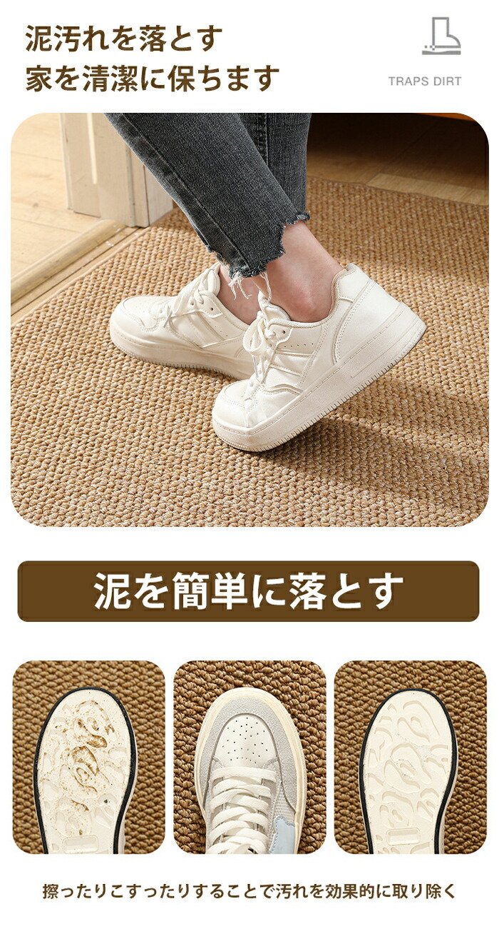 玄関マット 泥落とし 汚れ防止 足ふきマット 泥除け 玄関 ドアマット サイザル風 猫 爪とぎ 撥水 拭ける 大判サイズ 長方形 カーペット ラグマット おしゃれ 滑り止め 耐 ラグカーペット