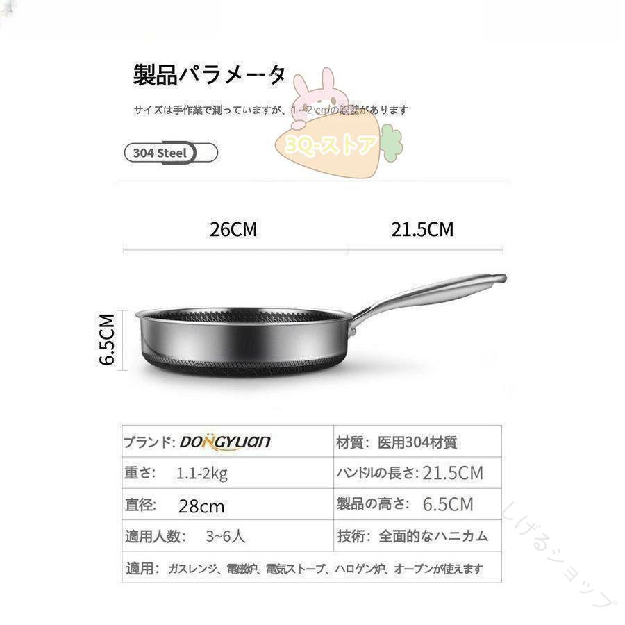 焦げ付き防止仕様304ステンレス鋼フラ A B C D E F G H I