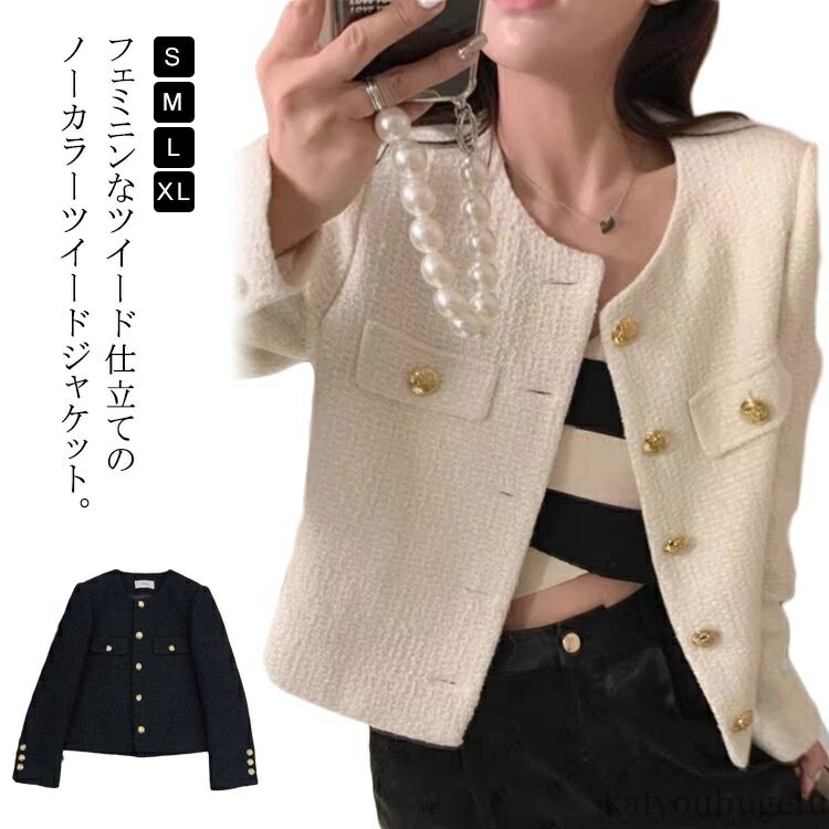 ツイード レディース ツイードジャケッ レディースファッション 豊富 ブラック ホワイト S M L XL
