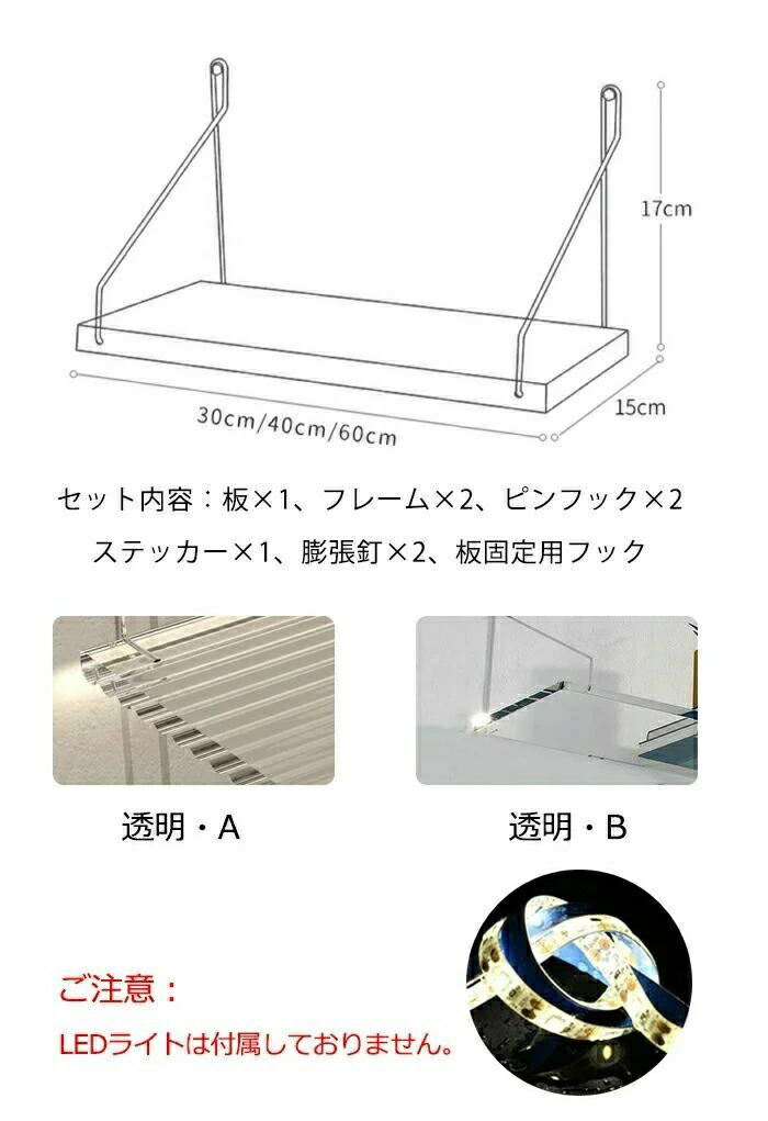 ウォールシェルフ 賃貸 取り付け 透明 バッグ 小物 ブランド雑貨 新登場! 透明・A 透明・B 30cm×1枚 40cm×1枚 60cm×1枚 30cm1枚+40cm1枚+60cm1枚