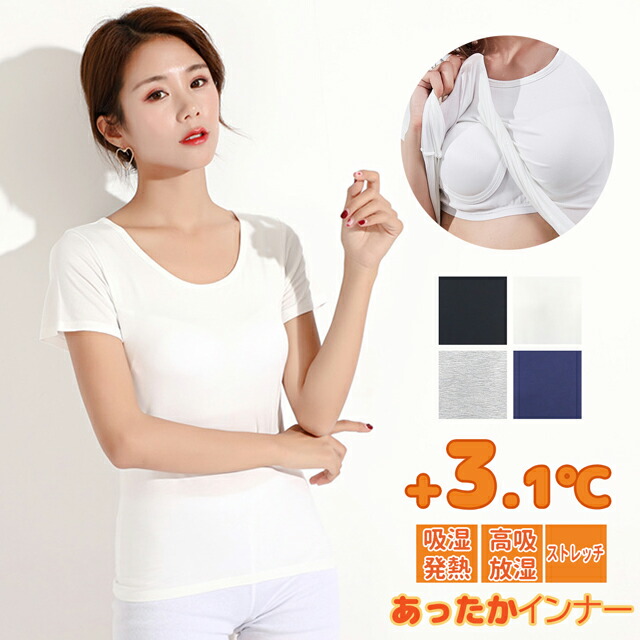 半袖Tシャツ レディース カップ付き レディース インナー 下着 インナーシャツ 新登場! M(79-87cm) L(86-94cm) LL(XL)(93-101cm) 3L(XXL)(100-108cm) 4L(XXXL)(107-115cm) 5L(XXXXL)(114-122cm) black white gray
