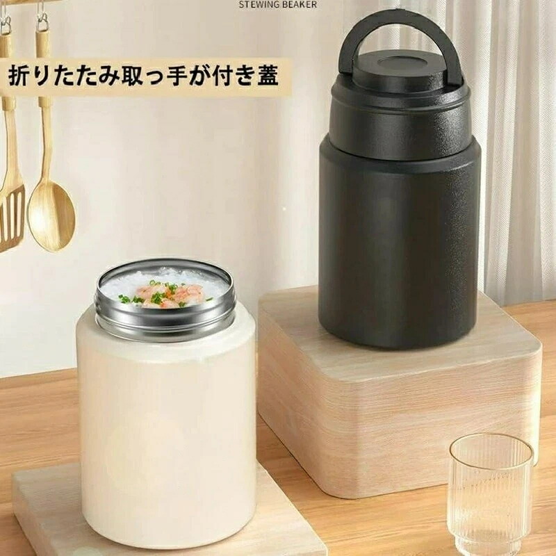 弁当箱 800ml大容量 スープジャー 弁当箱 水筒 保温ランチジャー 特集 ベージュ ブラック 550ml(内容量500ml) 800ml(内容量750ml)