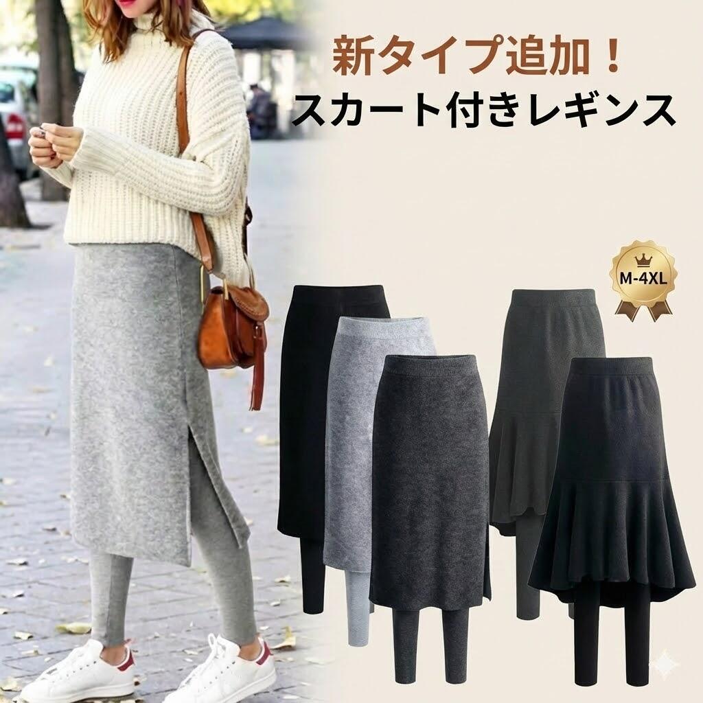 新タイプ追加 スカート付きレギンス レ レディースファッション 特集 ブラック グレー ダークグレー TYPE2-ブラック TYPE2-ダークグレー 薄手 裏起毛
