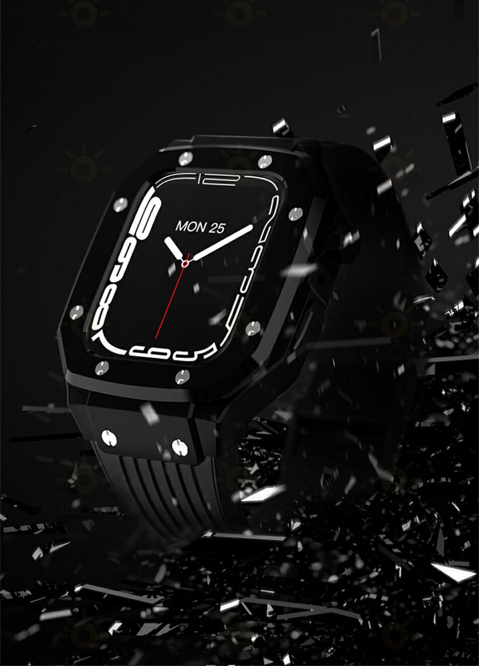 高品質な金属製ケースが、Apple Watchの本体をしっかり保護。