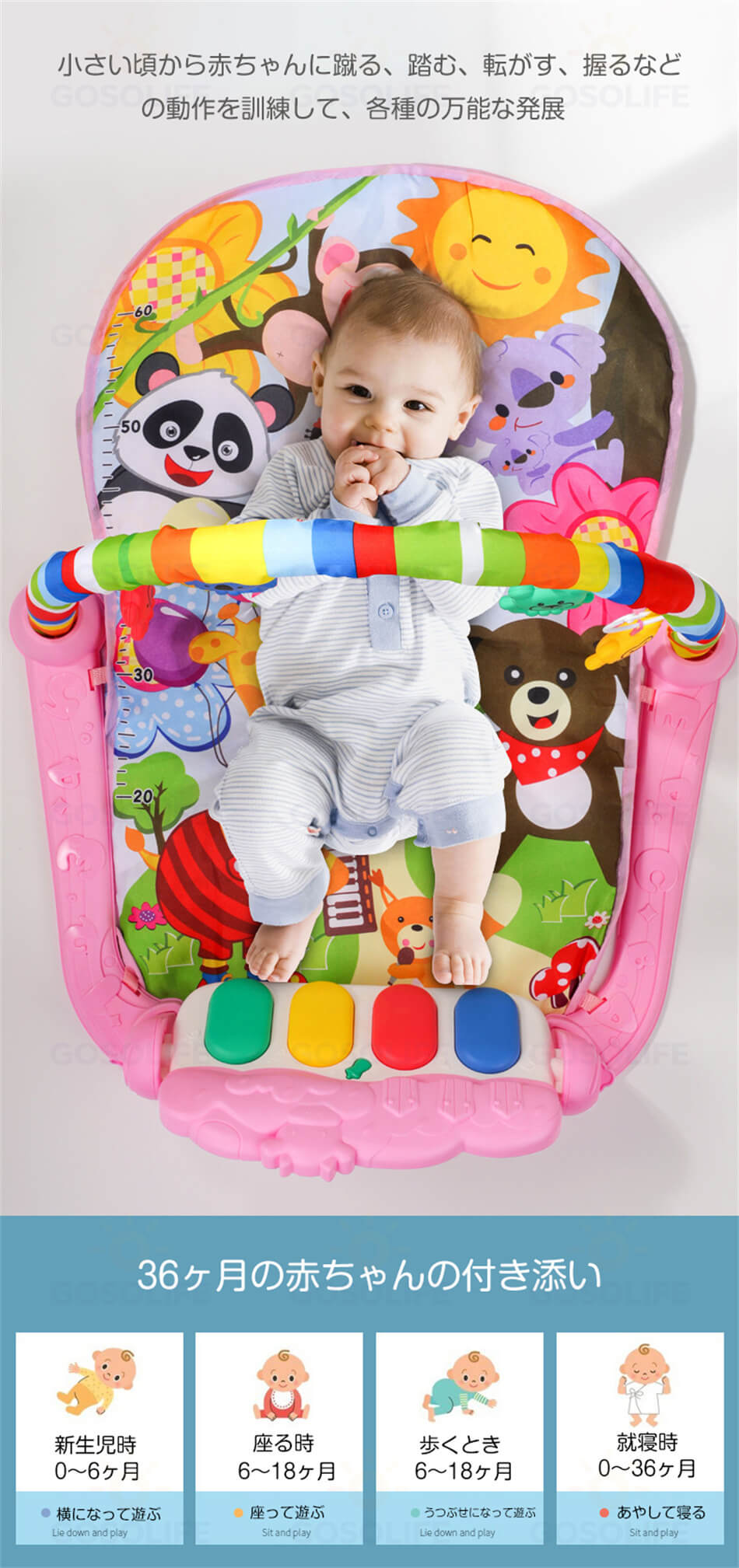 5種類タイプ ベビージム プレイマット 0~36ヶ月の赤ちゃん向け 赤ちゃん プレイジム ベビー 遊ぶマット 0-36ヶ月 水洗い 乳幼児 乳児 おもちゃ 音楽 知育玩具 感覚刺激 早期教 ピアノジム