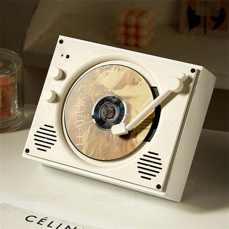 CD プレーヤーは、クラシックなレトロ蓄音機のデザインが特徴で、リビングルーム、ダイニングルーム、ベッドルーム、ジム、または好きな場所に配置できます。