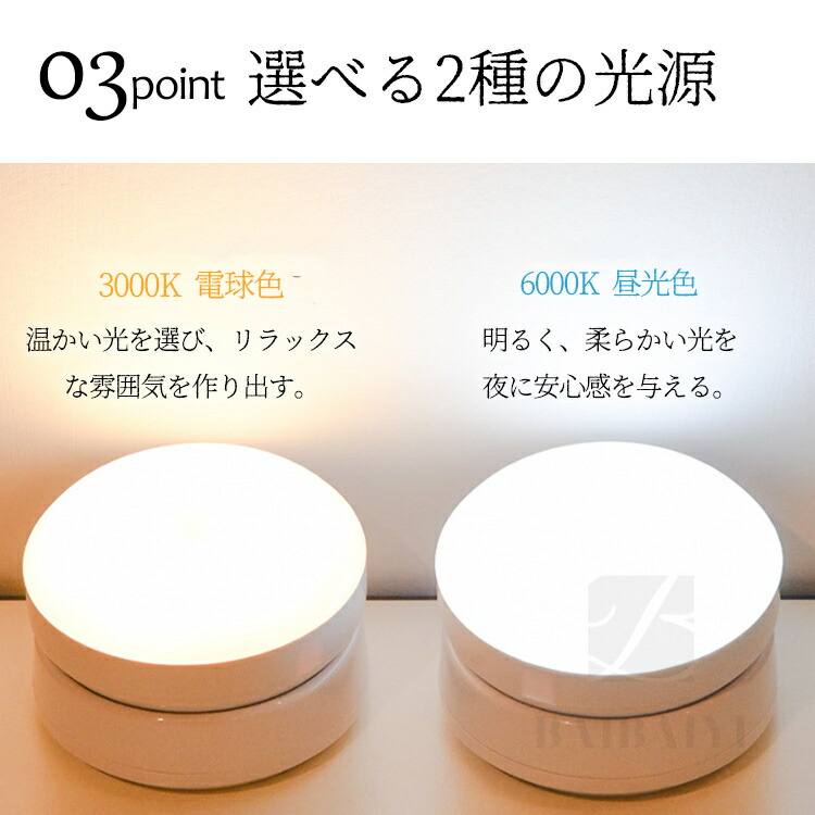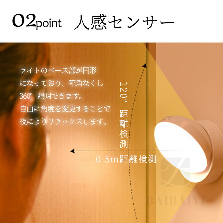 2. モーションセンサー:人感誘導技術を採用し、LEDナイトライトは自動的にインテリジェントにオン/オフできます。人が通ると点灯し、人が離れると消灯するので、便利で実用的です。
