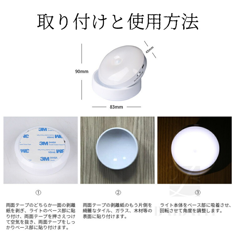 フットライト 人感センサー ライト ナ 昼光色 電球色 充電式・1個 充電式・2個 充電式・3個