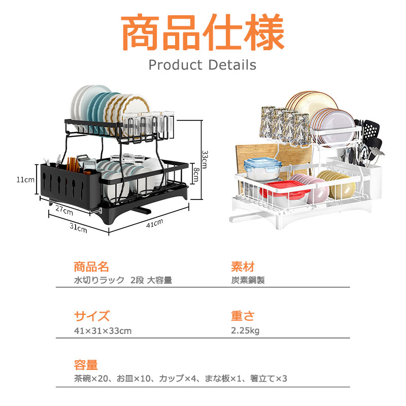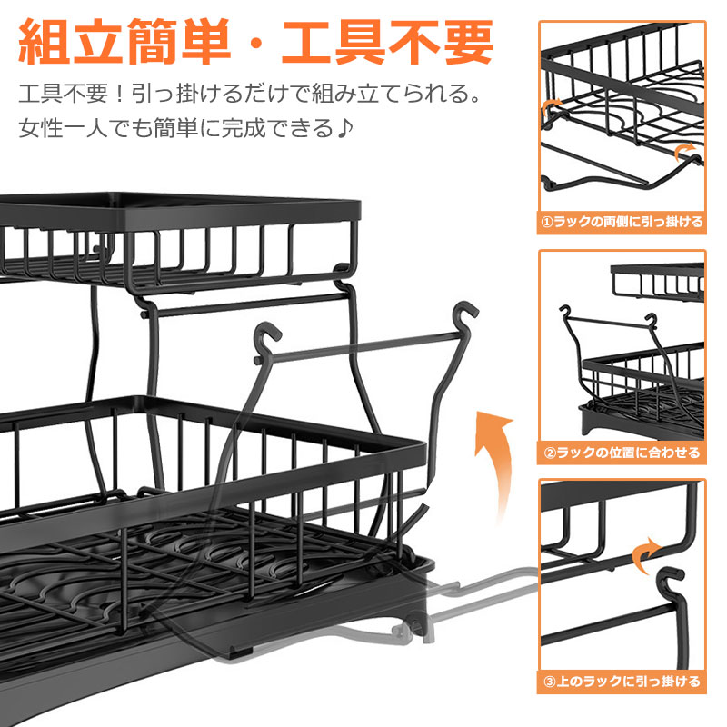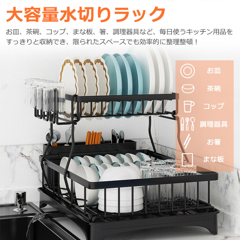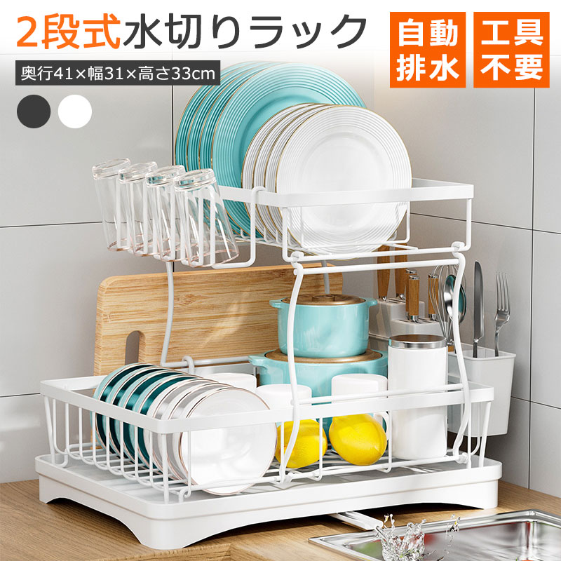 水切りラック 2段 水切りかご シンク キッチン整理用品 水切りラック 続々登場 ブラック ホワイト