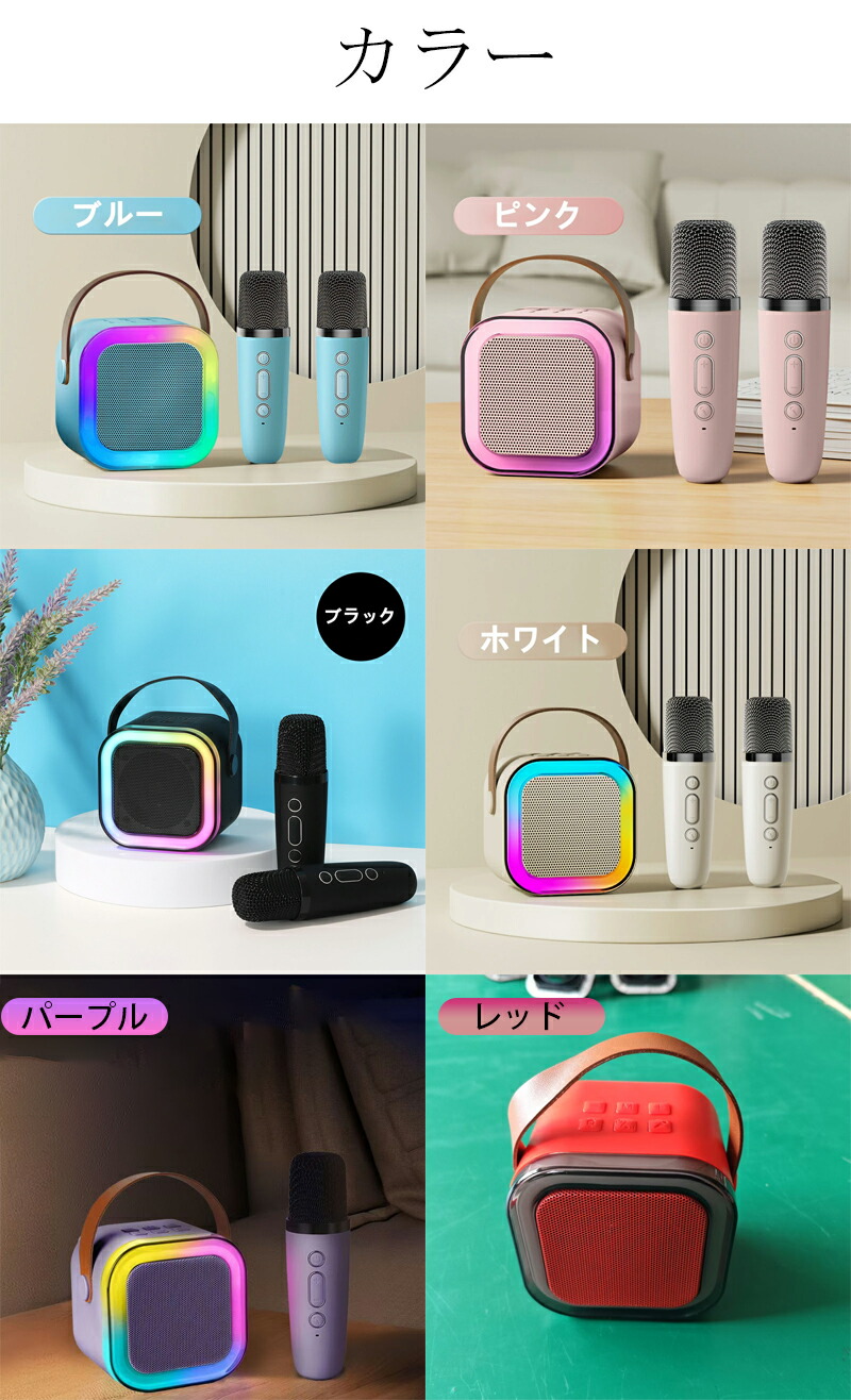 カラオケセット ワイヤレスマイクスピー ブルー ピンク ブラック ホワイト パープル レッド マイク 1本付き マイク 2本付き