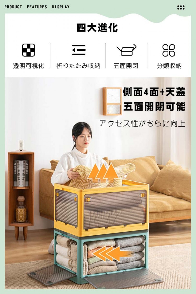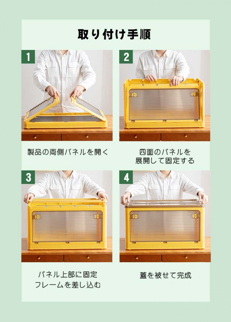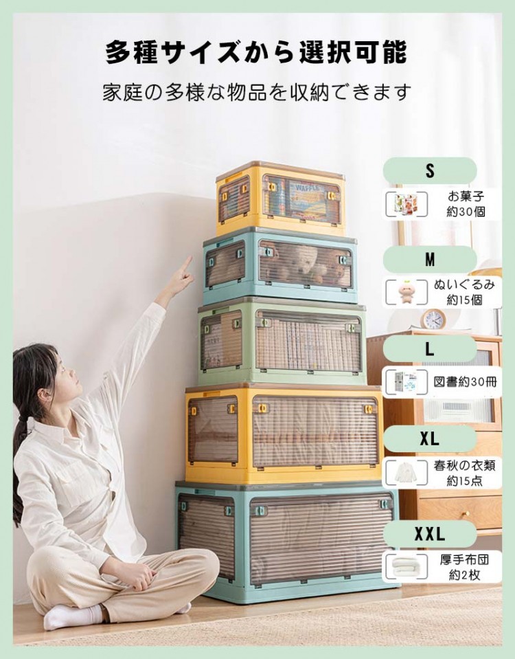 収納ケース 折り畳み 省スペース キャ S M L XL XXL XXXL イエロー グリーン ブルー ベージュ ホワイト 目隠しホワイト
