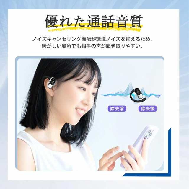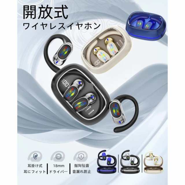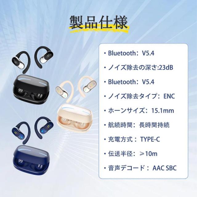 ワイヤレスイヤホン 耳掛け型 イヤホン ブラック ベージュ ブルー