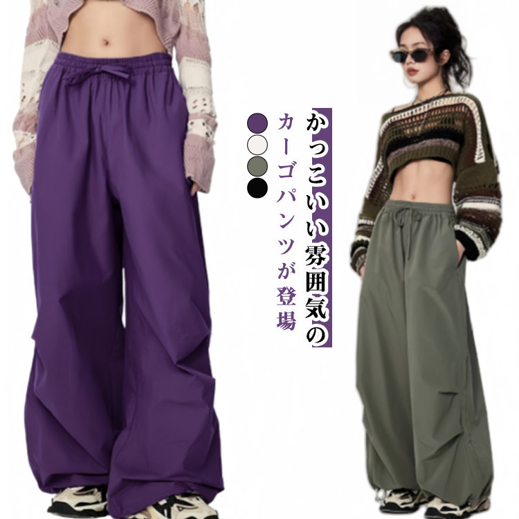 カーゴパンツ レディース ウエストゴム メンズファッション 早い者勝ち ブラック パープル グリーン グレー S M L XL 2XL 3XL