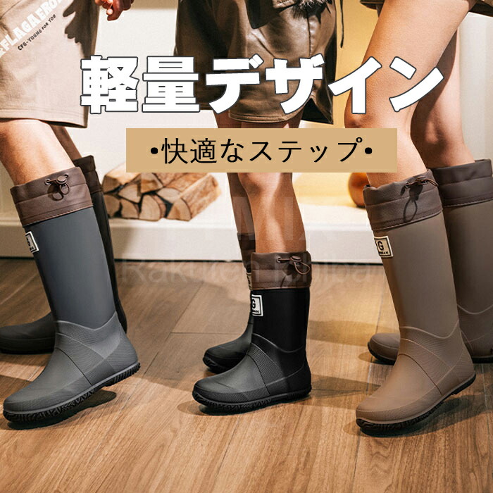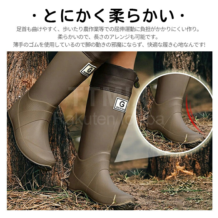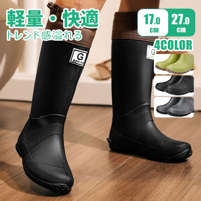 レインブーツ 防水ロングブーツ 滑り止め蒸れにくい ユニセックス コンパクトインナー付き 軽量柔らかい 園芸用 27cm レディースメンズ兼用 雨雪対応