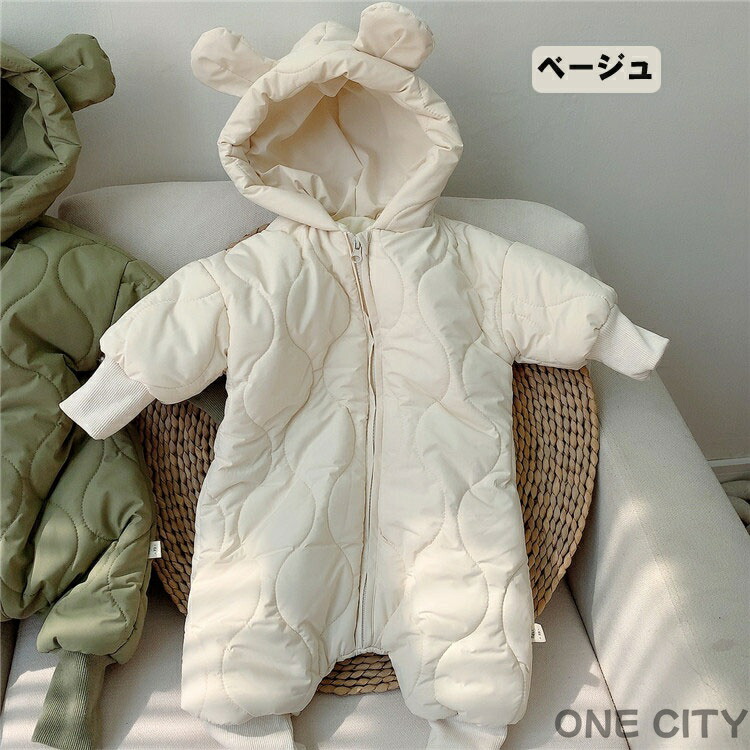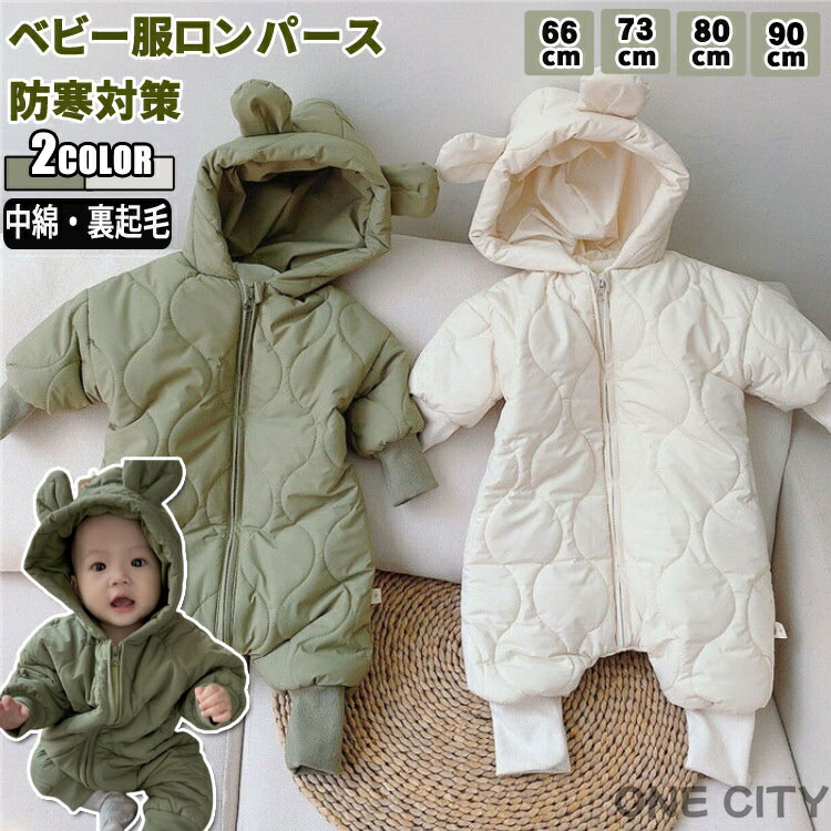 ロンパース カバーオール 防寒防風ジャ ベビー ベビー服 ファッション カバーオール ロンパース 通販 グリーン ベージュ 66cm 73cm 80cm 90cm