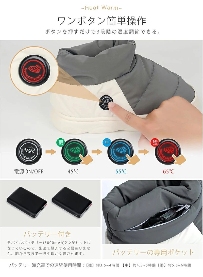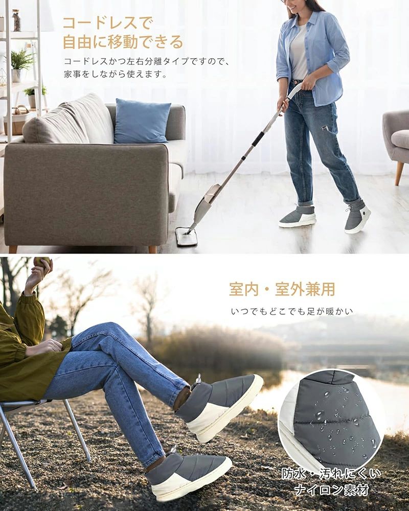 アウトドア 防水 滑り止め ダニ退治 丸洗い可 防寒対策 軽量 ポカポカ 5000mAモバイル2個付き USB給電式 撥水加工 3段階温度調節 コードレス フットウォーマー 足温器 電気 足元ヒーター