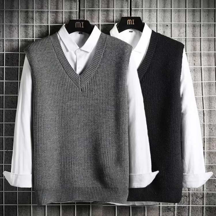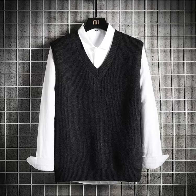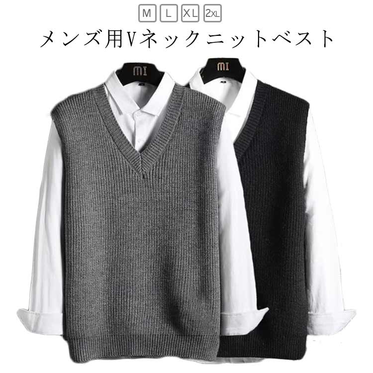 ニットベスト Vネック プルオーバー トップス ベスト ジレ 豊富 ブラック グレー M L XL 2XL
