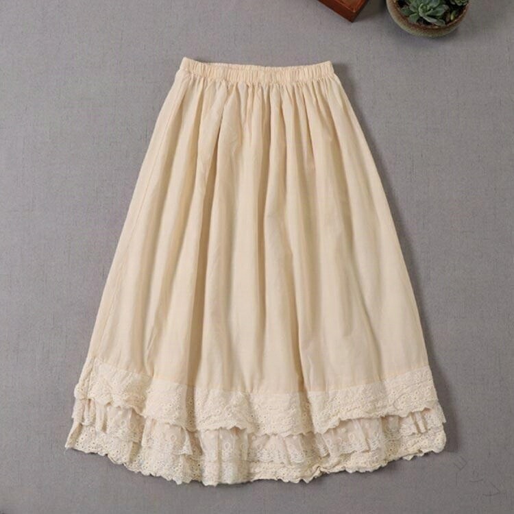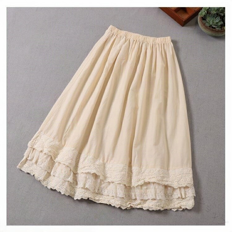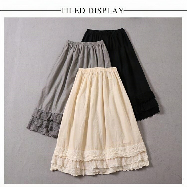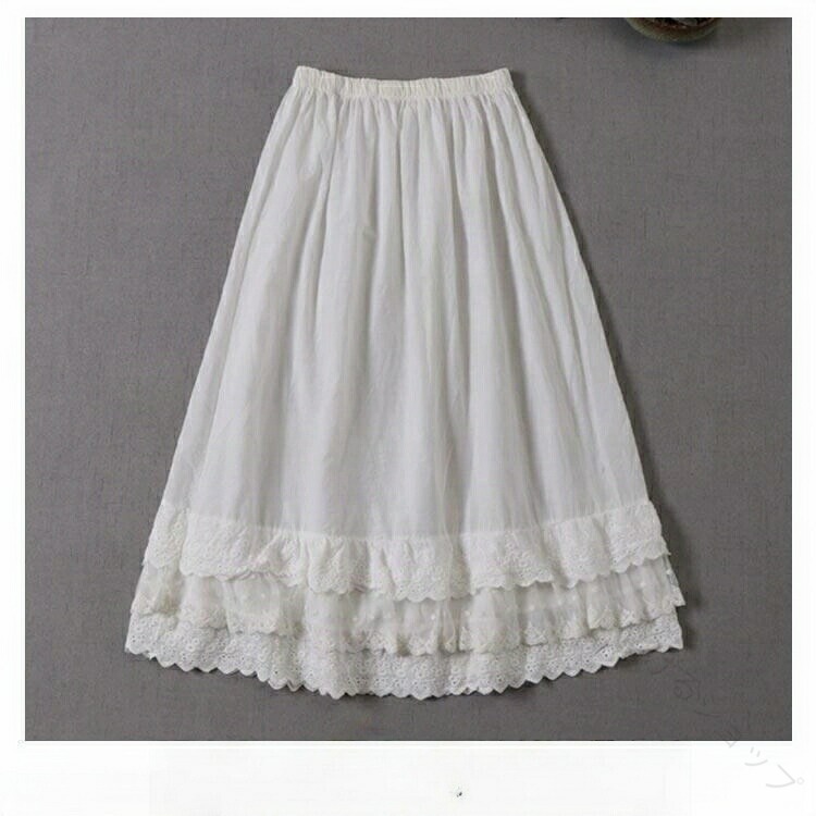 ペチコート レース刺繍 透け防止アンダースカート ストレッチ 体型カバー 綿100% 柔らか素材 ロング丈 白 レディース用 春夏秋冬対応 大きいサイズ 秋冬 重ね着 レイヤードスタイル 冬