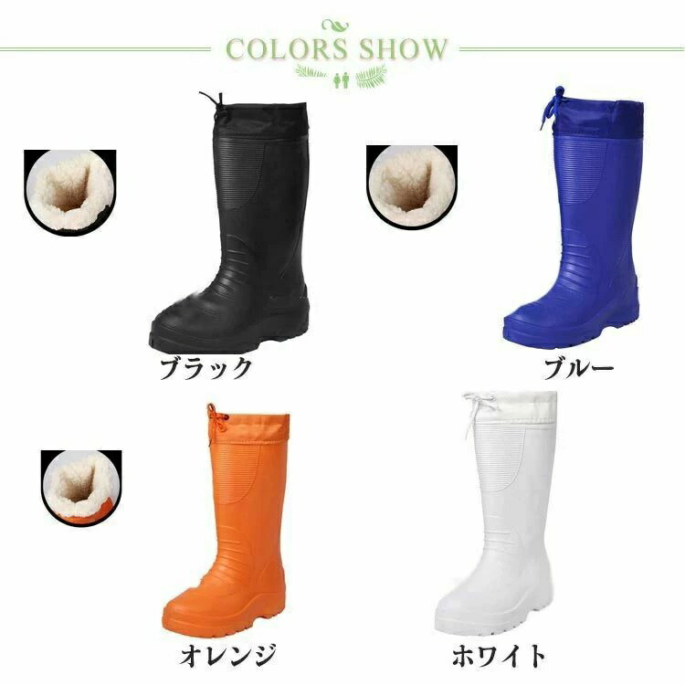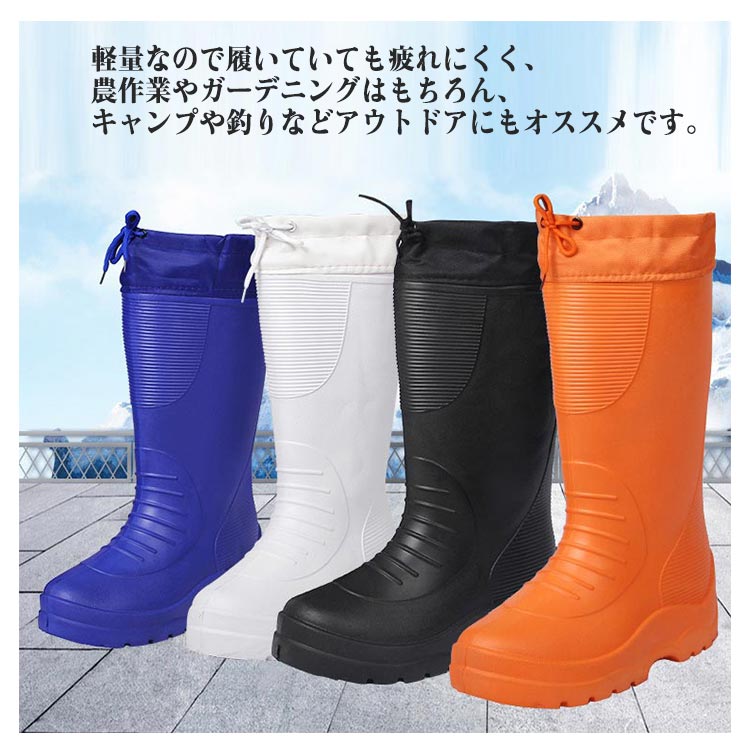 ロング丈 防寒ブーツ スノーブーツ 農 靴 続々登場 ブラック ブルー オレンジ ホワイト 24.5cm 25cm 25.5cm 26cm 26.5cm 27cm 27.5cm 28cm