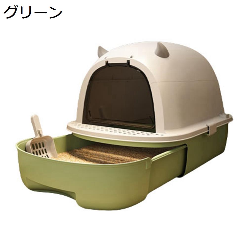 猫トイレ ドーム型 引き出し式 大型猫 猫用品 トイレ用品 トレーナー トイレ容器 続々入荷中 イエロー グレー グリーン