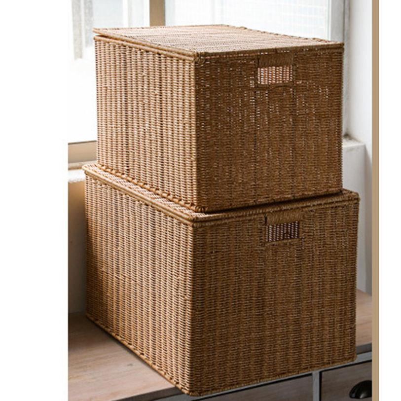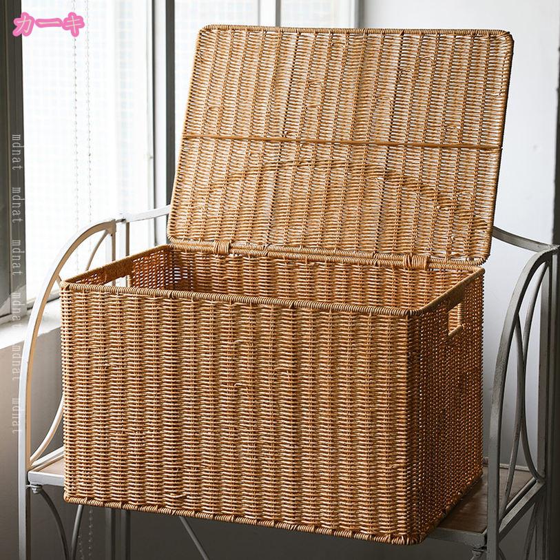 収納 小物入れ フタ付きバスケット 蓋付き ナチュラル 小物収納 バスケット 編みかご 籐かご 収納かご 防塵 収納バスケット 収納ケース 和風 かご 雑貨収納 キッ おしゃれ